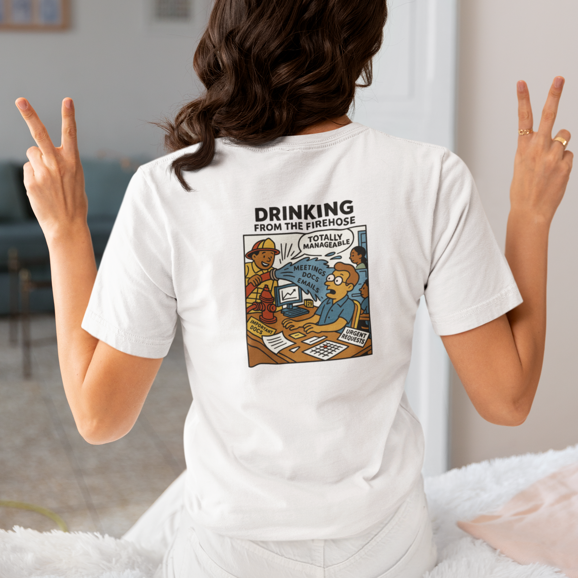The “Drinking From The Firehose” Premium Tee captures the glorious chaos of starting a new gig — where “onboarding” means 47 tabs, 3 meetings at once, and absolutely no idea what your job is.
