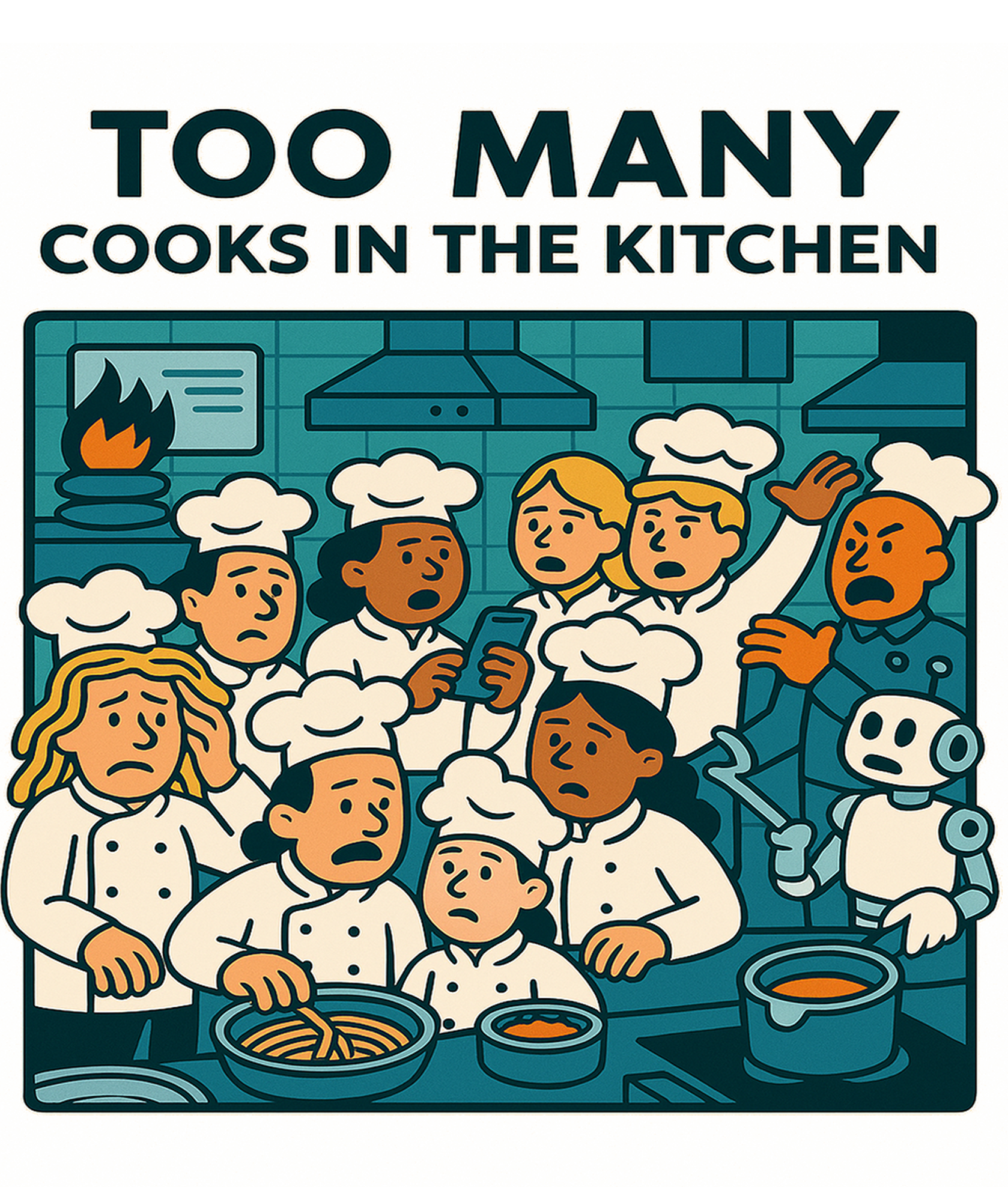 Too many cooks in the kitchen. And not a single one reading the recipe.